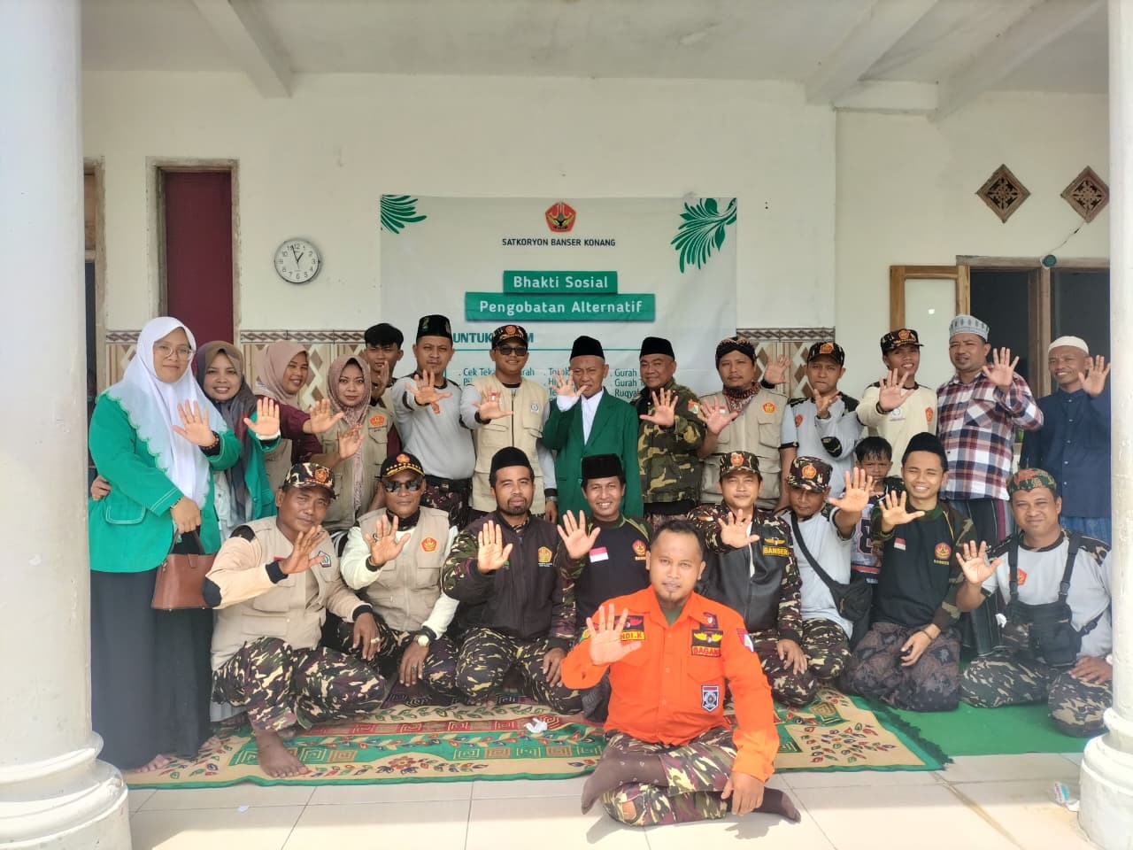 Bangkalan — Banser Satkoryon Konang menghadirkan Banser Husada Satkorcab Surabaya dalam kegiatan bakti sosial pengobatan alternatif gratis bagi masyarakat, Minggu (14/12/2025), di kediaman Ketua PAC Fatayat NU Konang.
