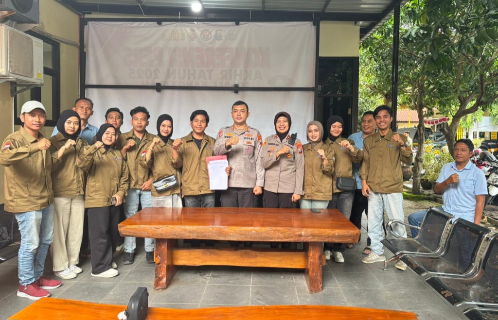 Pengurus BEM-KM STKIP PGRI Bangkalan berfoto bersama jajaran Polres Bangkalan dan Kapolres AKBP Wibowo usai audiensi terkait maraknya curanmor, Kamis (19/2/2026). (Foto : Jatiminfo.id).