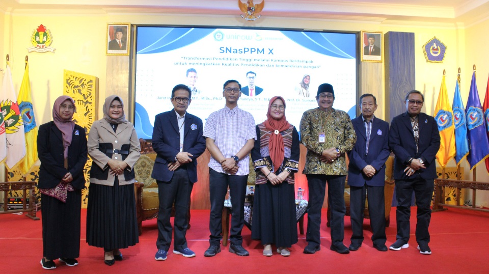 Khadiran Jarot Indarto, Direktu PPN/Bappenas bertepatan dengan dilaksanakannya Seminar Nasional Hasil Penelitian dan Pengabdian Kepada Masyarakat ke 10. NasPPM X yang terpusat di Aula Lantai 2 Gedung Rektorat kampus Unirow.