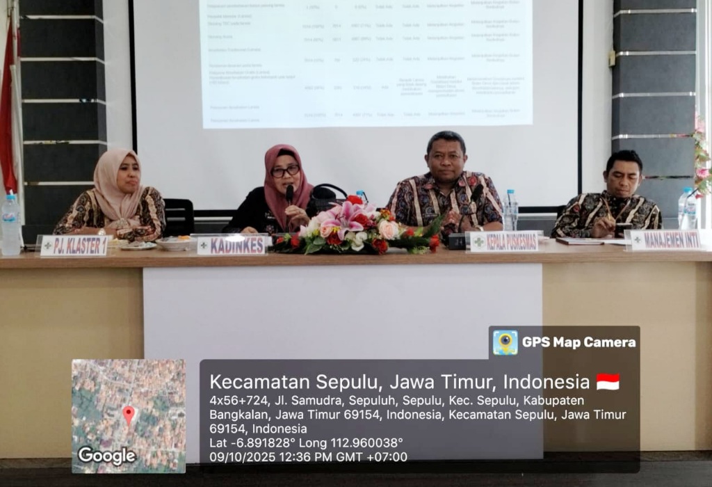 Bangkalan – Dalam upaya memperkuat sistem pelayanan kesehatan dan meningkatkan capaian program prioritas daerah, UPT Puskesmas Sepulu menggelar Lokakarya Mini Bulanan pada Kamis, 9 Oktober 2025, dengan mengusung tema “Dari Sepulu, Menyala untuk Sehat Bangkalan.”