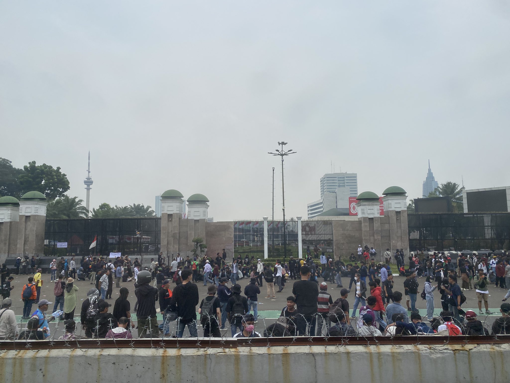 Peserta demon mulai memadati depan Gedung DPR RI, Senayan (Foto: Bian)
