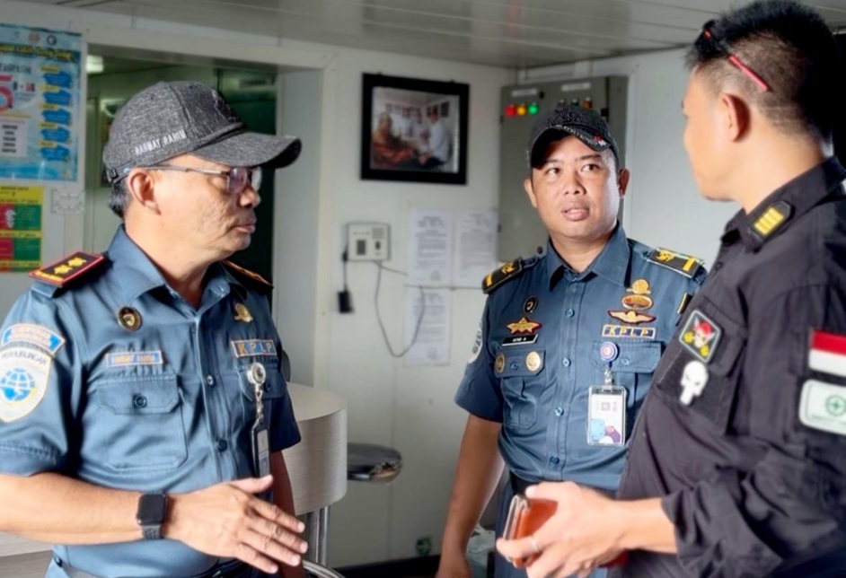 Kepala UPP Kelas III Masalembu lakukan koordinasi Koda Nahkoda KM dan memastikan keselamatan penumpang selama pelayaran, ikut memastikan juga Bung Tomo dalam kegiatan tersebut. (Foto : Jatiminfo.id).