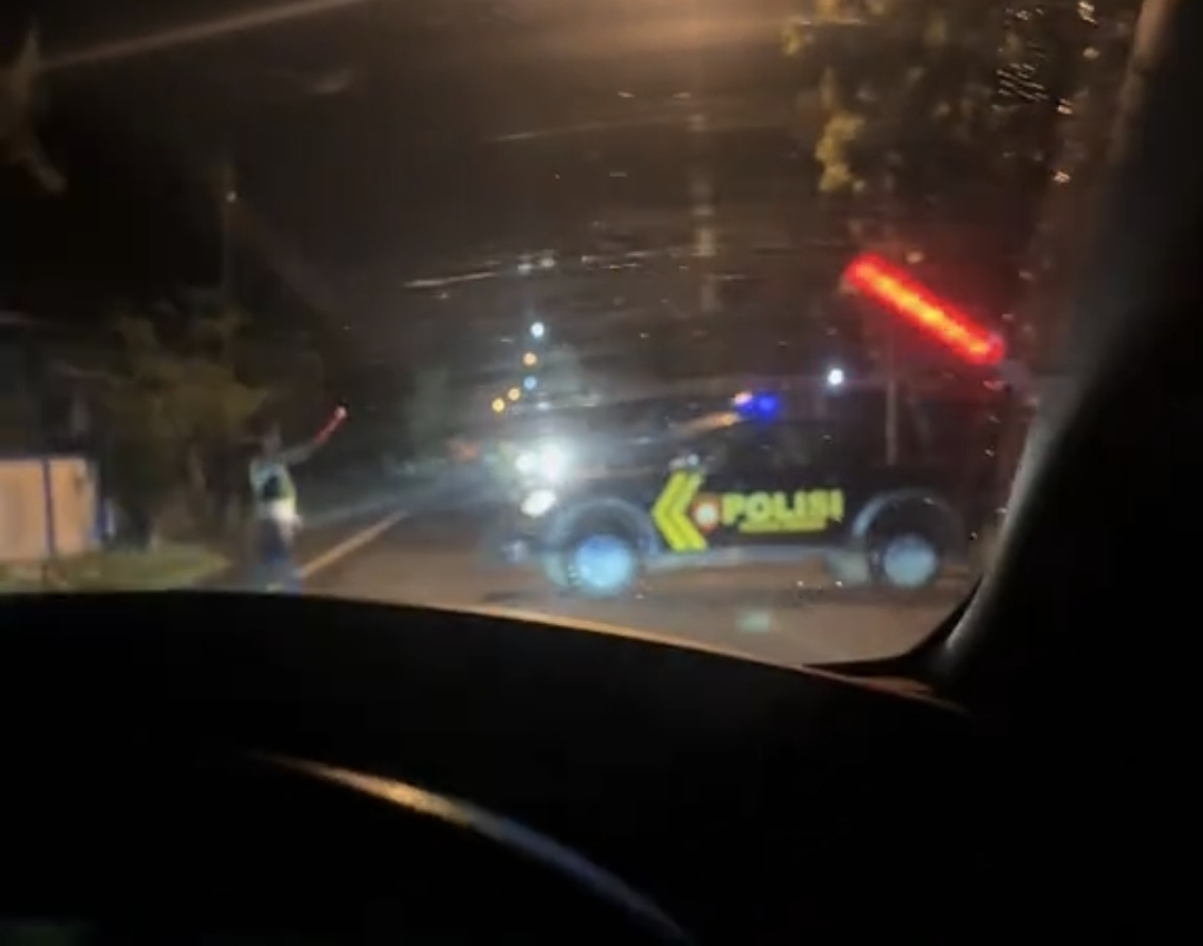 Dalam video tersebut, terlihat beberapa polisi memberhentikan seorang pengendara mobil. Bahkan satu unit mobil patroli polisi tampak memotong arus dan membentang di tengah jalan seolah berusaha menghentikan kendaraan tersebut.