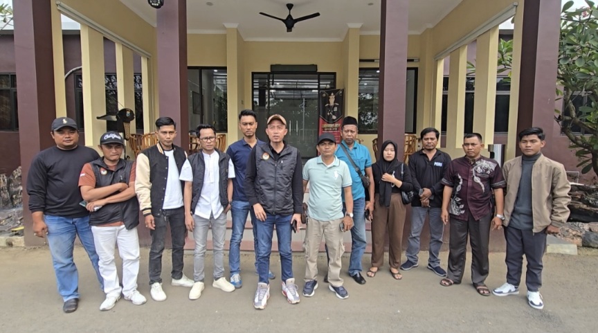 Jajaran insan pers yang tergabung dalam Wartawan Peduli Keadilan (WPK) usai meninggalkan ruang audiensi saat melakukan konferensi pers di depan Mapolres Bangkalan, (Foto : Jatiminfo.id,2025).
