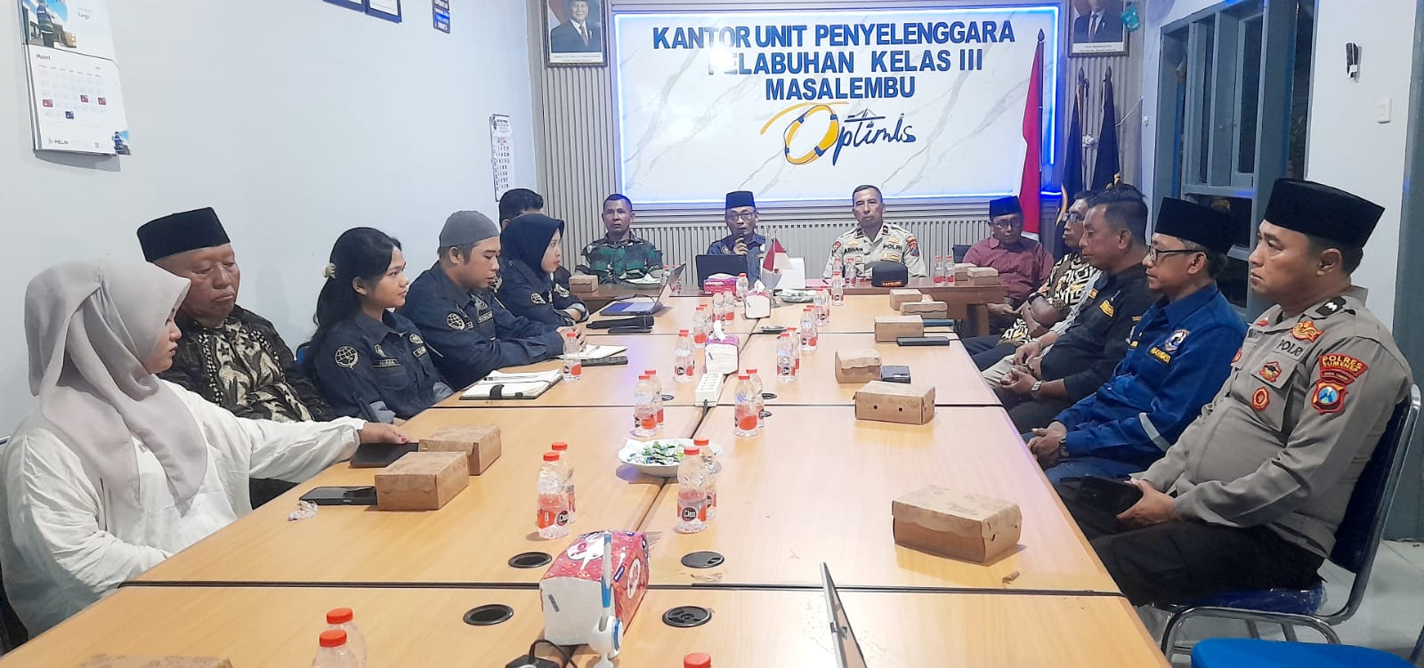 Rapat kordinasi Kepala UPP Kelas III Masalembu bersama Forpimka menjelang persiapan arus mudik dan arus balik 2026, yang terpusat di kantor Syahbandar Masalembu, Sumenep, Jawa Timur. (Foto : Jatiminfo.id).